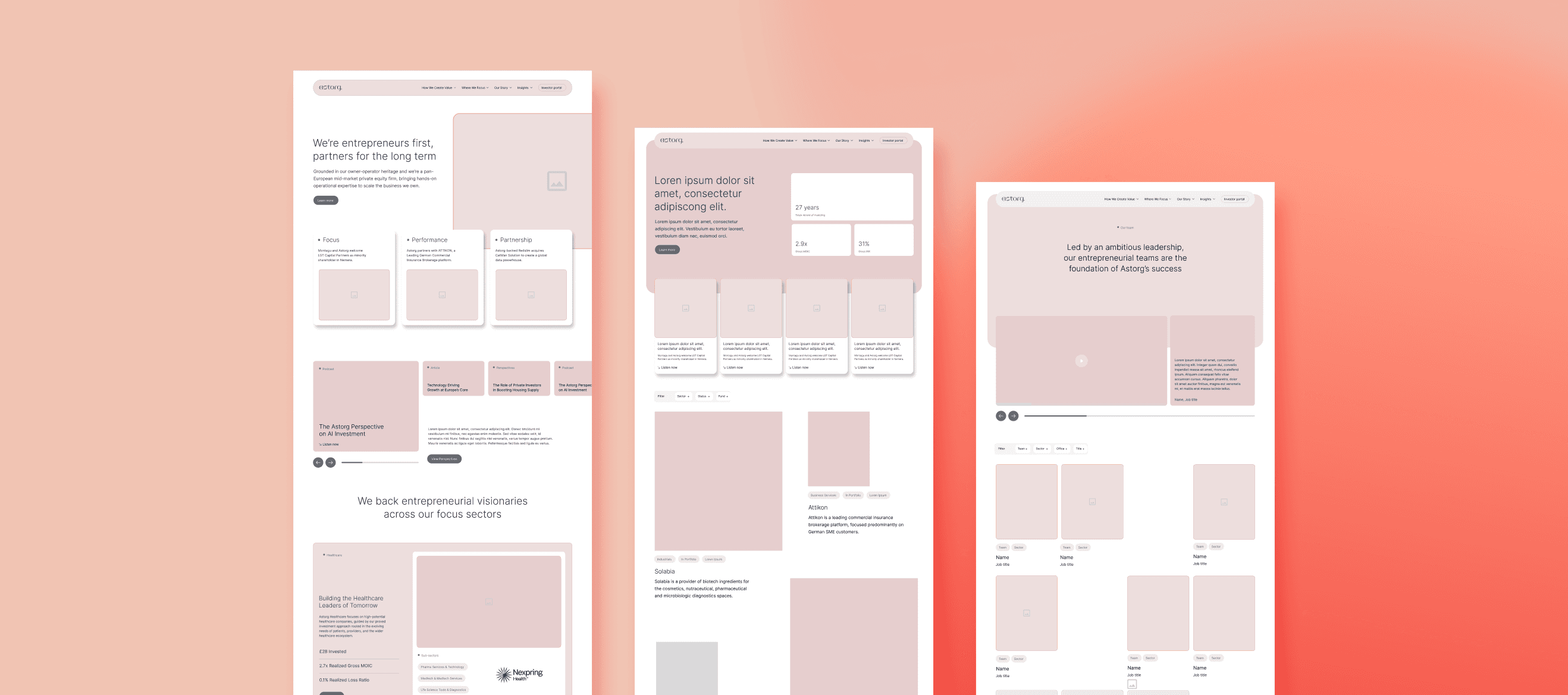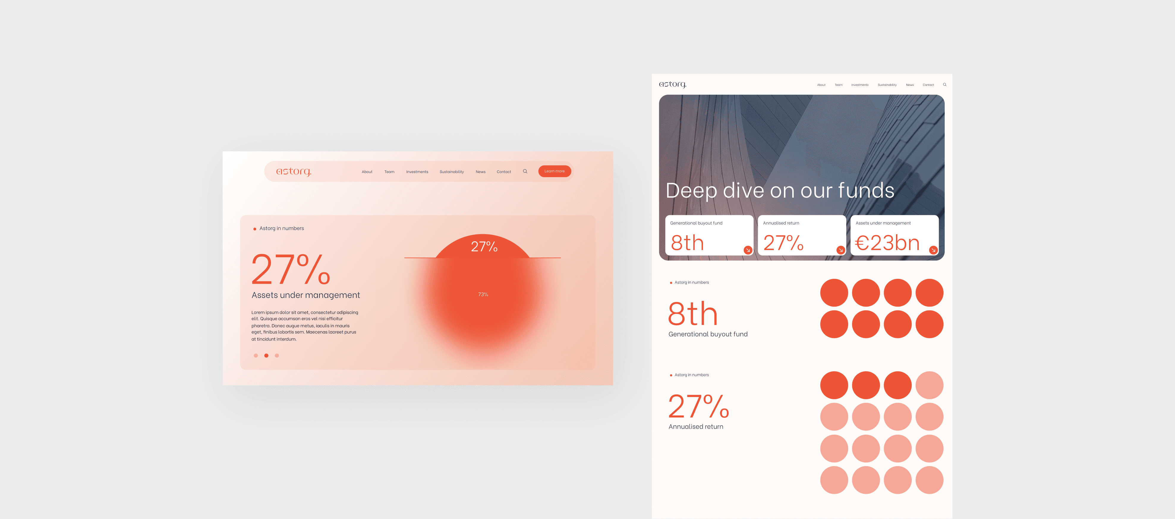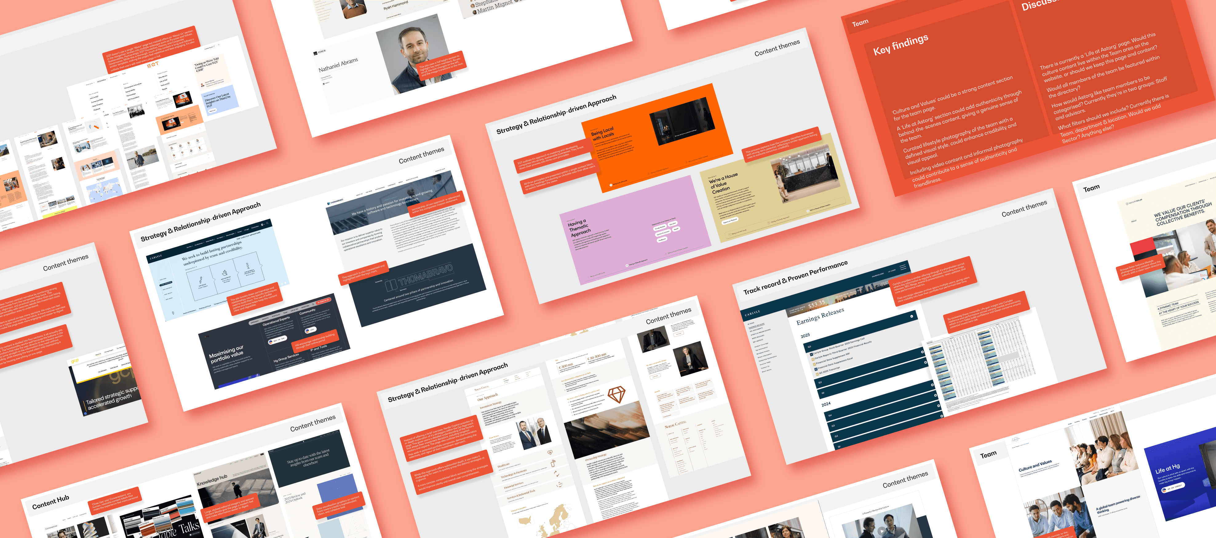 The project began with targeted competitor research to inform the pitch, analysing common patterns within the investment sector to identify what worked, what felt generic, and where opportunities existed to stand out. These insights then guided discovery sessions with Astorg, helping shape discussions around their goals, audience, and core messaging, and leading to a clearer, more focused pitch direction.