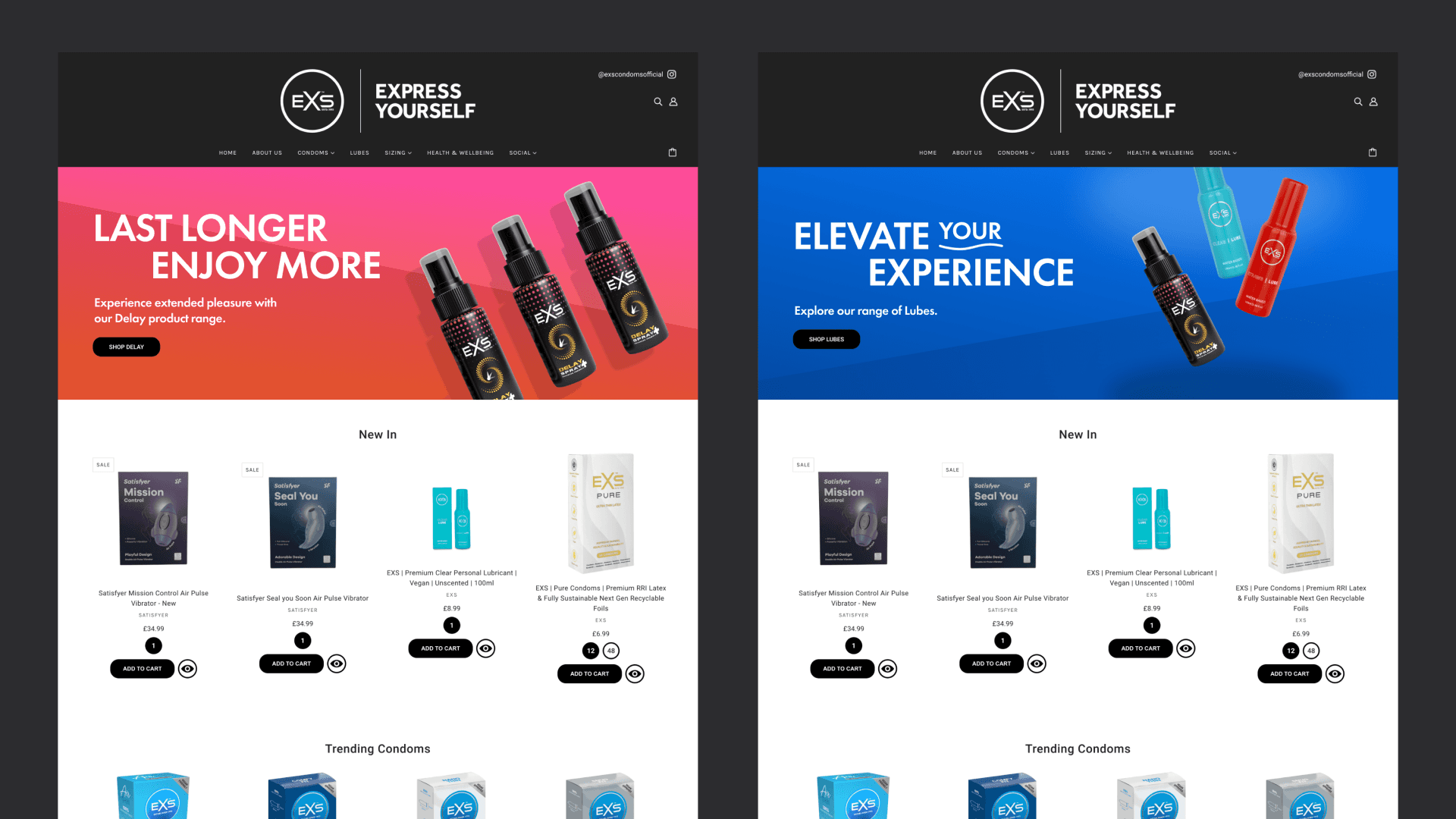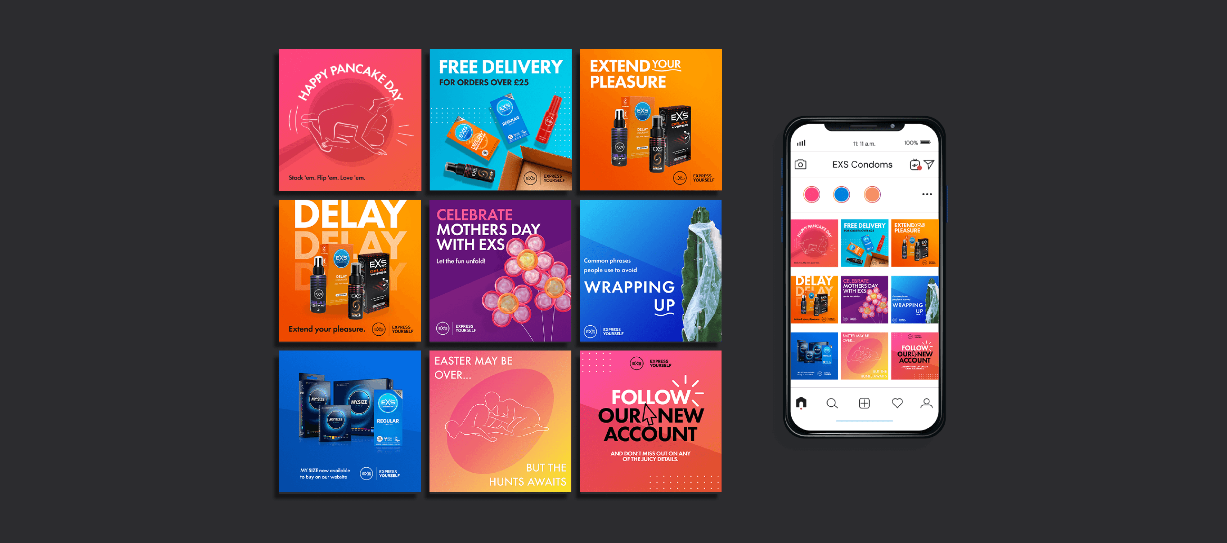 EXS is a family-run condom company with a long-standing presence in the sexual health market. I supported the brand by creating a variety of marketing assets, focusing on a fun and approachable tone to normalise conversations around sexual health while maintaining a clear, modern, and consistent brand presence across digital channels.